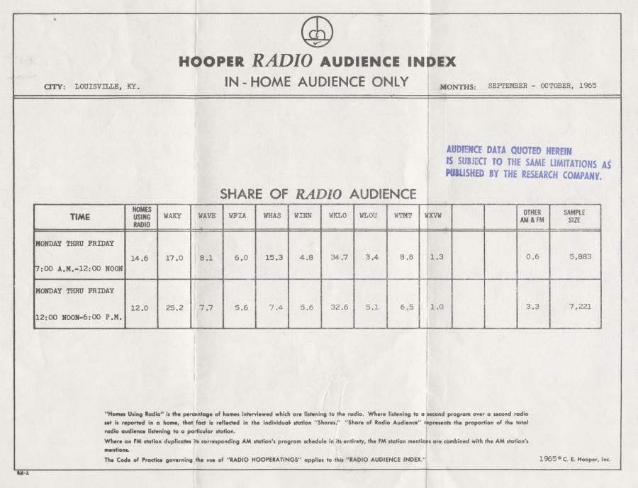 from the Fall 1978 Arbitron Louisville ratings, one of the last